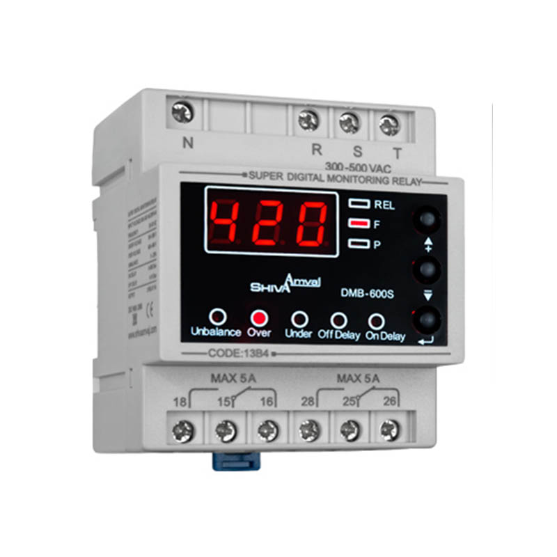سوپر کنترل فاز دیجیتال DMB-600S با ارائه ۲ عدد رله ۵ آمپر، به کاربران امکان میدهد تا بهطور مؤثر و قابل اعتمادی سیستمهای برقی خود را مدیریت کنند. این رلهها با طراحی مدرن و قابلیت اطمینان بالا، بهطور مؤثری از تجهیزات در برابر نوسانات و اختلالات برقی محافظت میکنند و عملکرد پایدار و بدون وقفه سیستم را تضمین مینمایند. این ویژگی بهویژه در محیطهای صنعتی که نیاز به کنترل دقیق و سریع دارند، بسیار کاربردی و مؤثر است.